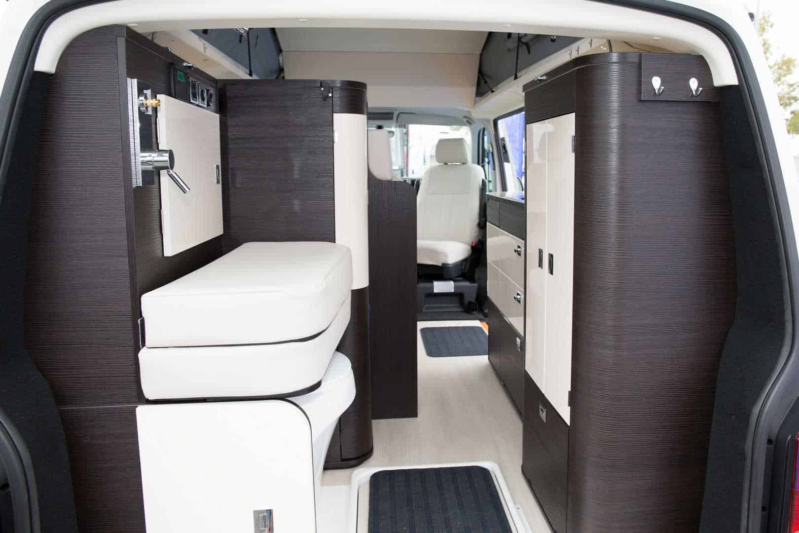 Given the few items that will have to be fixed in a certain location, you can lay your interior out in a number of different ways around this. There are plenty of different design templates available on the web, but always have in mind comfort and accessibility: clambering across the driver’s seat to get into the back or having to fold up four different types of table before bed just isn’t practical and this should be reflected in your design.